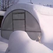 Теплица "Раздольная" спокойно выдерживает снеговую нагрузку до 220 кг на м2 (соответствует 60 см снежного покрова). Это значит, что покрытая поликарбонатом теплица прекрасно проявит себя даже в самых снежных регионах России.